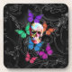 Fantasy skull and coloured butterflies coaster