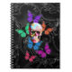 Chic elegant sophisticated girly, cute romantic fantasy skull and beautiful colourful multicolored butterflies, digitally collaged, on a black vintage Gothic Baroque background pattern, perfect for day of the dead or as a pretty goth gift for her. Visit the LEATHER_AND_LACE STORE for more alternative gothy gifts. This design was created from a vintage skull and some vintage colourful butterflies and a stylish black swirly floral damask background, which was made from a photograph of an old gate. This stylish day of the dead style design would make a great gift for her. Goth alternative girls would love this pretty romantic original design. Easily personalise this by adding your name or text to create a persona gift that she will love.