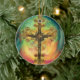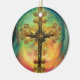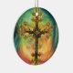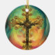 Fantasy Steampunk Ornate Cross In Aqua Ceramic Ornament