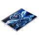 Dreamy swans glowing on a midnight blue background with an abstract refection, fully customisable.
