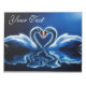 Dreamy swans glowing on a midnight blue background with an abstract refection, fully customisable.