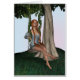 3D digital render of a beautiful girl with red long hair on the fantasy swing