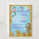 A charming children's mermaid party invite, featuring an adorable little mermaid (on front and back of the invitation) and her under the sea friends. There are also, dolphins, seashells, starfish and a large golden seahorse with a pearl eye. There are also pearls embedded in the decorative golden sand/glitter border. The back of the card features a larger version of the mermaid, with all the essential rsvp details. All text information can be personalised easily to suit by clicking on 'Personalise this Template' above.