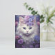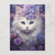 This digital painting is a beautiful portrait of a magnificent white fluffy cat lying among pink and purple flowers.