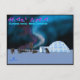 A digital painting featuring an igloo on the polar ice pack, sled dogs and a man in a parka. The northern lights glow overhead. Kuvianak Inovia is Merry Christmas in the Inuktitut (Eskimo) language. Above the English text Kuvianak Inovia appears in the Inuktitut alphabet.