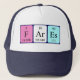 Fares spelled out as F Ar Es (Fluorine Argon Einsteinium) on a hat for the scientist in you.