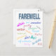 Say goodbye in several languages! This farewell greeting card is perfect for colleagues or friends leaving for a new adventure. Whether it is a vacation, retirement or a new job, wish them well with this great card.