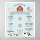 This cute and modern boy's1st/first birthday milestone poster features a pig, chicken, and cow with a red barn on a baby blue background. Personalise for your needs. You can find matching products at my store.
