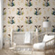 Farm Animals Baby Cow Calf Floral Greenery Cream Wallpaper