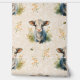 White baby cow calf farm animal with bumble bee in wild flowers and greenery on cream background.