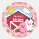 Farm Animals Baby Shower; Red & White Gingham Classic Round Sticker