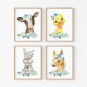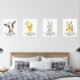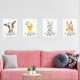 Add the finishing touches to your baby’s nursery or child’s bedroom with these gorgeous art prints! Design features farm animals (cow, duck, horse, bunny), blue watercolor flowers and greenery.