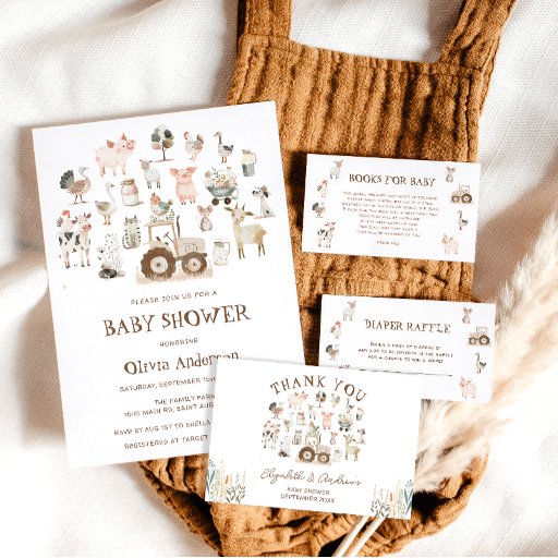 Cute Farm Animals Barnyard Neutral Baby Shower Designed by Katsiaryna Lukyanava