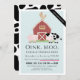 This cute and modern "oink, moo, cock-a-doodle do" gender neutral or boy's virtual birthday party invitation features a pig, chicken, and cow with a red barn on a light blue background framed by a white border. The reverse side features a white background with black cow patterns. Personalise for your needs. You can find matching products at my store.