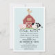 This cute and modern "oink, moo, cock-a-doodle do" boy drive-by baby shower invitation features a pig, chicken, and cow with a red barn on a light blue background framed by a white border. The reverse side features a white background with black cow patterns. Personalise for your needs. You can find matching products at my store.