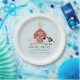 This cute and modern "oink, moo, cock-a-doodle do" boy's birthday paper plate features a pig, chicken, and cow with a red barn on a light blue background framed by a white border. Personalise for your needs. You can find matching products at my store.