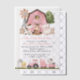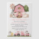 Invite friends and family in style and set the tone for your special day with this charming birthday invitation. Design features farm animals (cow, horse, sheep, pig, rooster, chicken), pink barn and pink tractor.
