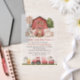 Invite friends and family in style and set the tone for your special day with this charming birthday invitation. Design features farm animals (cow, horse, sheep, pig, rooster, chicken), red barn and red tractor.