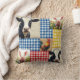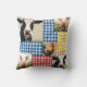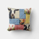 A colourful patchwork quilt design featuring gingham fabric and farm animals