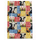 A colorful patchwork quilt design featuring gingham fabric and farm animals