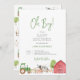 Oh Boy! Farm and tractor themed baby shower invitation with cute farm animals, red barn and green tractor. All text is editable, personalise with the wording of your choice.