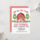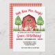 Farm/ Barnyard first birthday invitation with Red Gingham Back featuring Pig, Sheep, Cow, and a Horse with party hats.