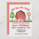 Farm/ Barnyard first birthday invitation with Red Gingham Back.