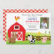 Farm Birthday Invitation with custom photo. Country Farm Animal Barnyard. Barn Cow Pig Horse Chicken. Boy or Girl Bday. .1st First Birthday. 1st 2nd 3rd 4th 5th 6th 7th 8th 9th 10th 11th 12th 13th 14th 15th, Any Age. Red and White Background. Printable Digital. For further customisation, please click the "Customise it" button and use our design tool to modify this template.