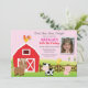 Farm Birthday Invitation with custom photo. Country Farm Animal Barnyard. Barn Cow Pig Horse Chicken. Boy or Girl Bday. .1st First Birthday. 1st 2nd 3rd 4th 5th 6th 7th 8th 9th 10th 11th 12th 13th 14th 15th, Any Age. Pink, Red and White Checked Background. Printable Digital. For further customisation, please click the "Customise it" button and use our design tool to modify this template.