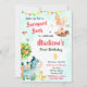 Invite your friends with this colorfull country farmhouse birthday invitation featuring apple tree, picket fence, little pig, several chickens, donkey and coloured banting.