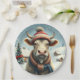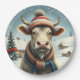 Farm Cow in Preppy Winter Attire and Hat Winter Paper Plate