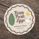 Farm Eggs Label Sticker with Chicken, Sun and Leaf