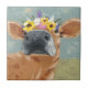 Farm Fun - Cow with Flower Crown Ceramic Tile