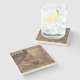 The coasters are gorgeous, a quality feel and heavy weight. They look like a precious archeological find. A rustic stone juxtaposed with a modern floral black and white print. I like the way the print goes slightly imperfect on the cut stone edges giving them a kind-of natural beauty.