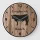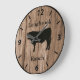 Personalize this custom barnwood styled clock with your farm, ranch, or stable name to add a personal touch to the decor. Perfect for the rodeo or livestock barn. Brown barnwood look clock face with beef bull cow silhouette in center. Choose one of two sizes and two colors of clock hand, whichever is to your liking.