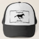 Personalise a hat with the name of your farm, ranch, or stable and advertise wherever you go. Stylistic border with galloping horse silhouette in middle. Input your farm, ranch, or stable name to complete the custom look. Available in many colours.