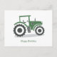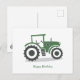 A birthday postcard with an illustration of a green and grey farm tractor in cartoon style and customisable text below! It could be a perfect to send to a kid or a farmer or a kid!