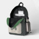 A backpack with an illustration of a green and grey farm tractor in cartoon style and a customisable text: perfect to make a gift to a farmer or a kid.