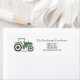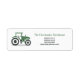 A return address label sticker with an illustration of a green and grey farm tractor in cartoon style! It could be used for a countryside family or a farmer!