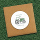 A thank-you sticker with an illustration of a green and grey farm tractor in cartoon style to use as a birthday party thank you favour! Change the message and use it for a happy birthday, a bridal shower or anything you want!