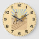 Farmer and Horse Plowing Field Retro Sunrise Large Clock