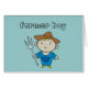 Farmer Boy cards, t-shirts, mugs, stickers, and more with a little blonde farmer boy dressed in blue coveralls holding a pitch fork.