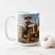 This fun coffee mug features a cartoon farmer on a tractor. Great for that man who loves his toys!