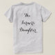 The front of this shirt has a photo of a combine harvesting beans with the words-You might be a farmer's daughter if...You spend your Friday nights in the combine with your dad, rather than out on a date. The back says The Farmer's Daughter.