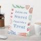 Stylish "Babies are sweet; Please take a treat" favour table sign for a Farmer's Market / Locally Grown theme baby shower to welcome a baby boy. The text is in light blue and dark blue. How to make advanced customisations: From a desktop computer, underneath where you enter your text in the customisation boxes, "click to customise further". This will take you into the design tool. Once you are happy with your edits, click "Done" to return to the original page, and add quantity to your cart etc.