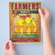 Who doesn't love a farmers market? promote your local farmers market with the cool Farmers Market Morning Rooster flyer! Edit the text and add your farmers market information. Farmers market flyer has a cartoon rooster on fence with the rising sun! Enjoy your local farmers market, eat local and eat fresh! Buy local!