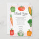 A cute farmers market girl baby shower flat thank you card. Design features hand painted watercolor vegetables on a pastel pink gingham background.