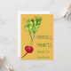 An invitation which could be used as a flyer for a Farmer's Market. From an original watercolour radish vegetable art illustration by artist Sacha Grossel. This colourful and vibrant vegetable art would certainly draw a crowd. It depicts a red and green organic radish in the genre of fruit and vegetable art.