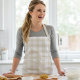 Traditional rustic farmhouse apron design in neutral beige buffalo check plaid.