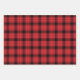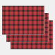 Traditional, classic plaid tartan pattern consisting of black and red crisscrossed, horizontal and vertical bands. Farmhouse country rustic holiday pattern gift wrapping paper sheets. Set of 3.